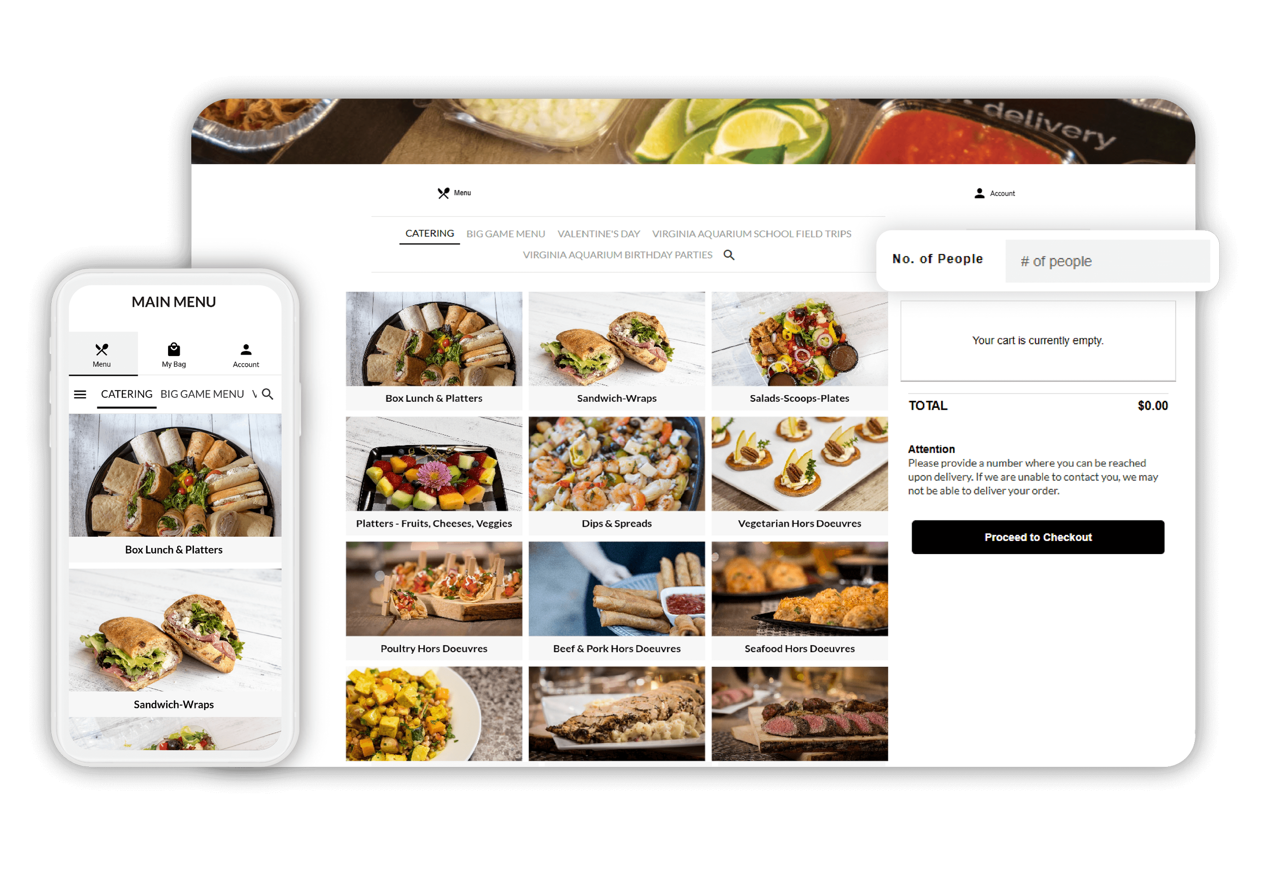Immersive online catering platform that visually showcases your menu items