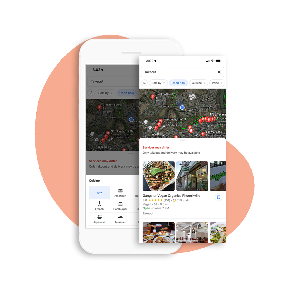 Those searching Google Maps for nearby restaurants have the ability to order from your restaurant by searching “takeout” or “delivery”.