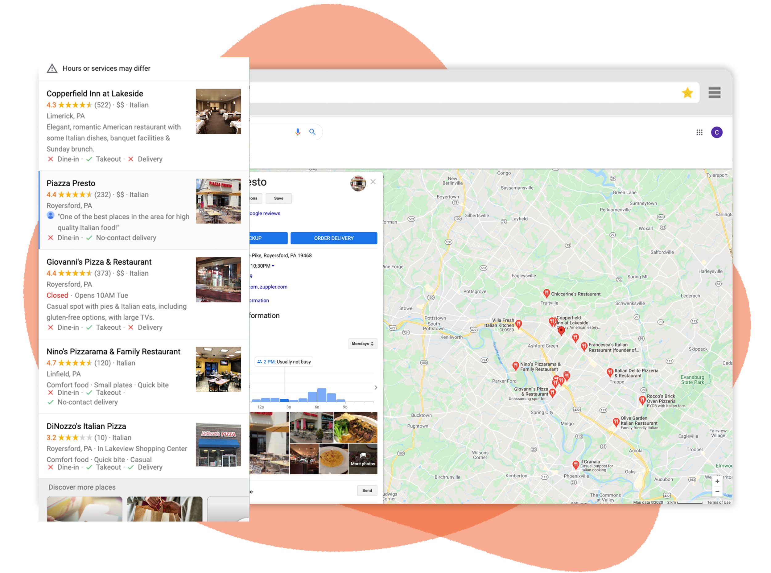 Google prioritizes restaurants with updated pickup and delivery information posted to their Google Business Listing.