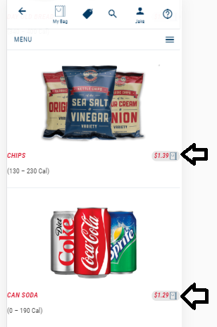If there is only 1 REQUIRED modifier, and no non-required modifiers attached to the item, then the modifier will be exposed to the user in line so they can seamlessly add the item to their cart. Once the user selects the ‘Price’ button they can either select the required modifier or hit the cancel button if they no longer want this item.