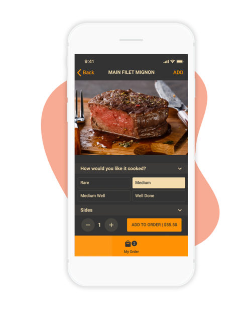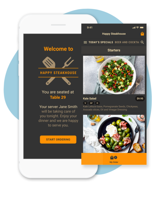 Guests place their customized food orders by sending orders straight to the kitchen or wait staff for fulfillment. Because the guest creates their own order, the potential for staff error is reduced, creating a more efficient dining experience for all. With guests placing their own orders, staff can focus more attention on proper safety precautions, delivering food and beverage items to the table, and contributing to the delight of each and every customer.