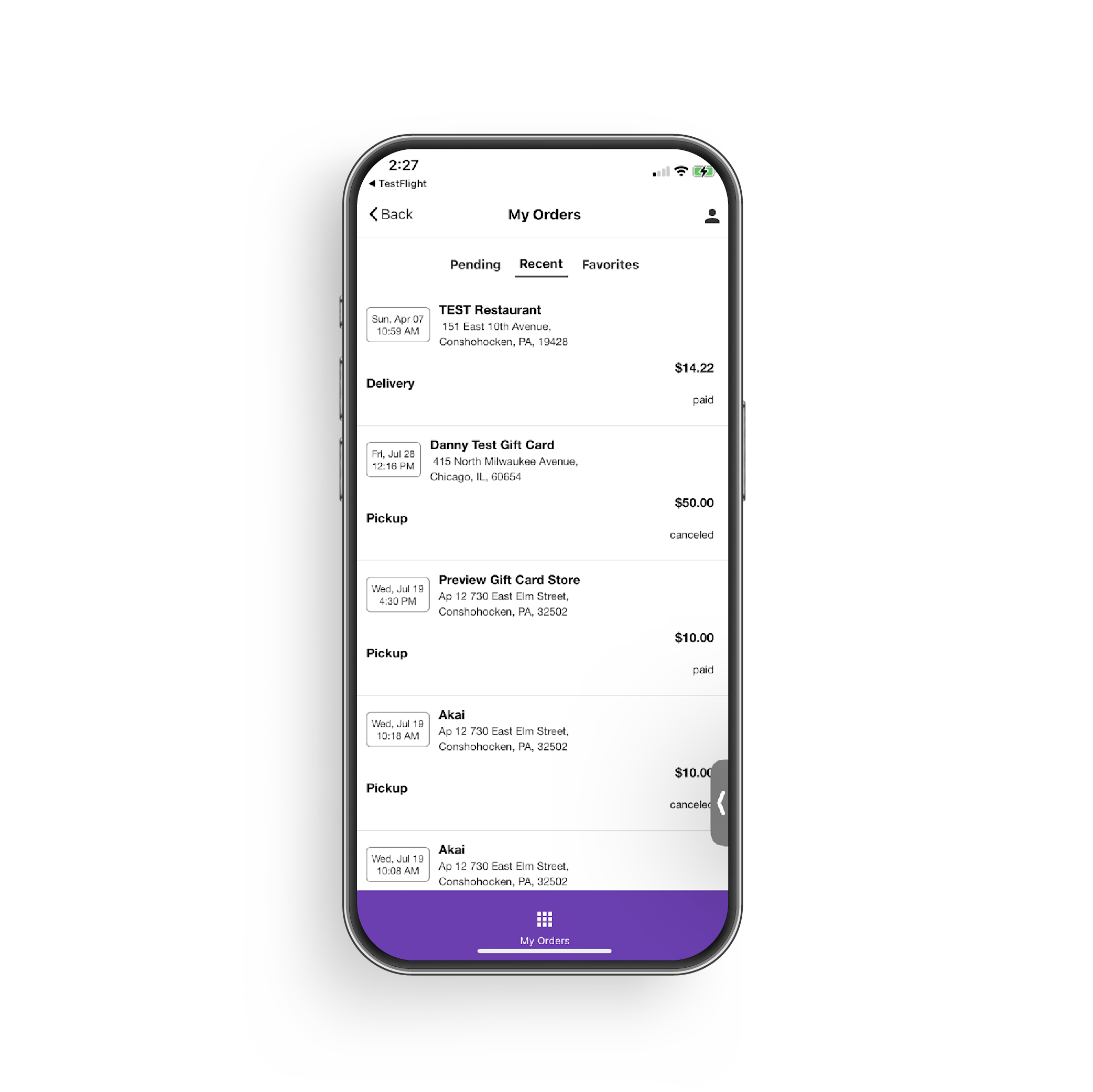 Reorder your favorite meals effortlessly! Our new My Orders feature allows users to access and repeat orders from any restaurant within your marketplace with just a few clicks.