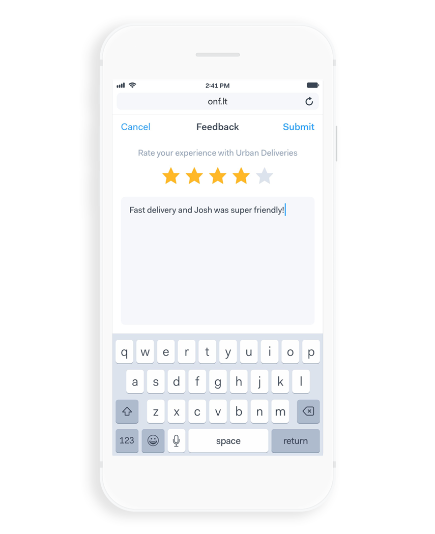 first-hand account of their experience with Onfleet’s integrated feedback form.