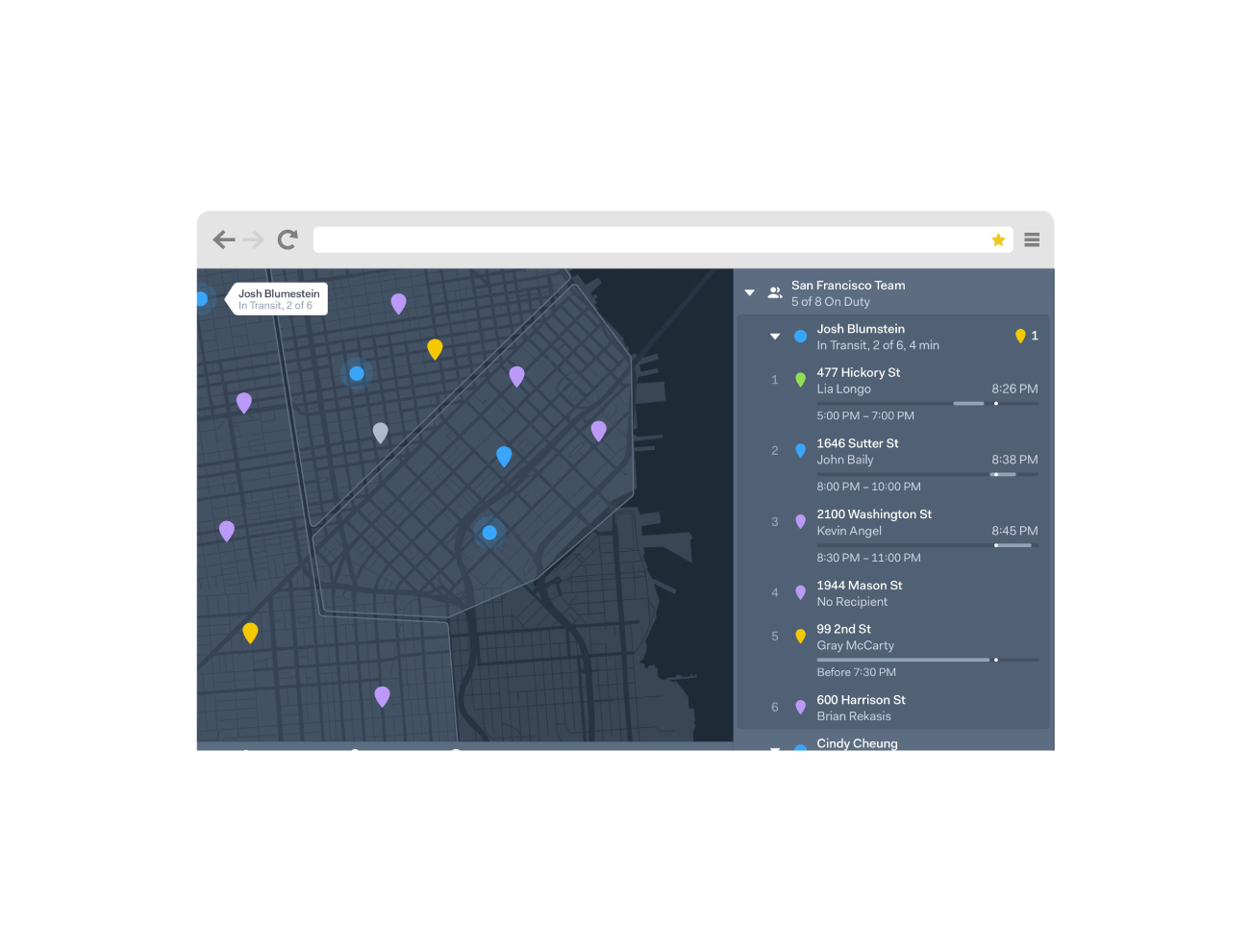 Onfleet’s driver chat allows you to communicate with your entire team inside a private, secure chat platform, and with the optional proof of delivery every delivery can be easily verified with the photos, signatures and barcodes collected. Onfleet’s machine learning also provides accurate predictive arrival times and real-time alerts.
