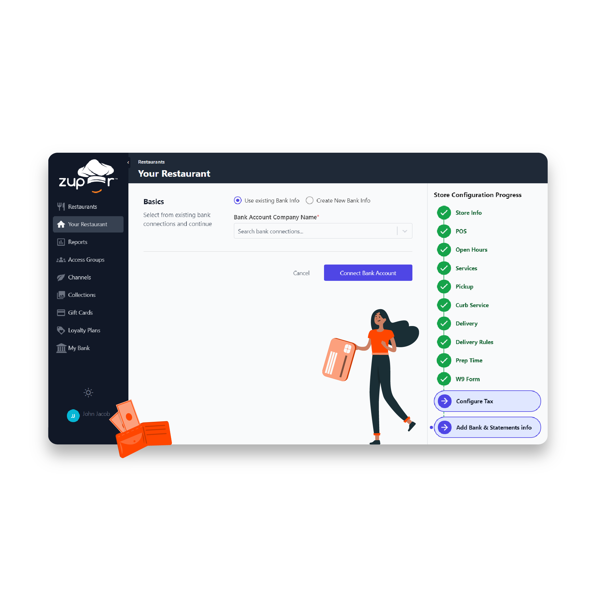 Add bank details, choose tenders, and define payment modes in a few clicks.