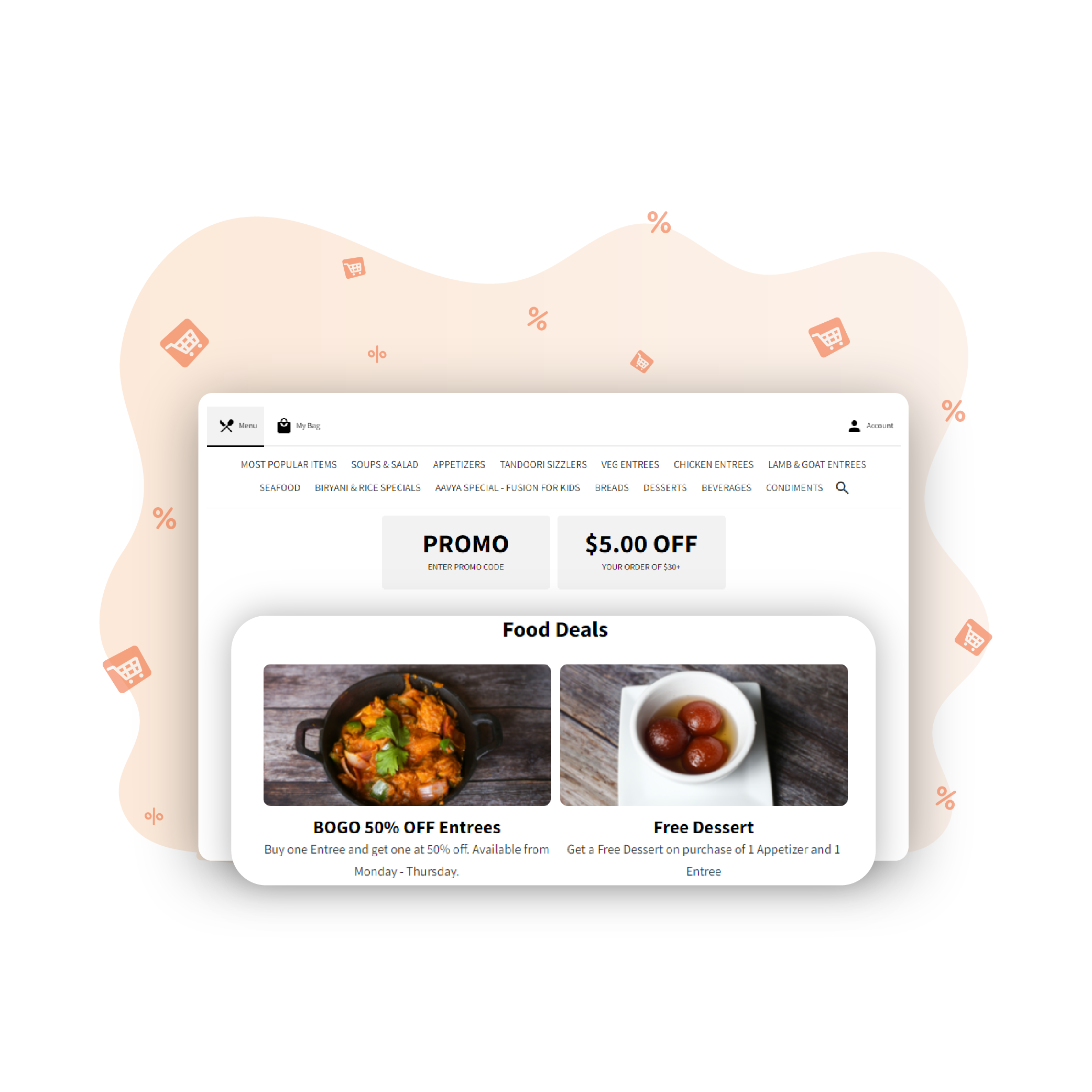 Increase your check sizes by recommending relevant menu items during the checkout process and throughout the ordering process