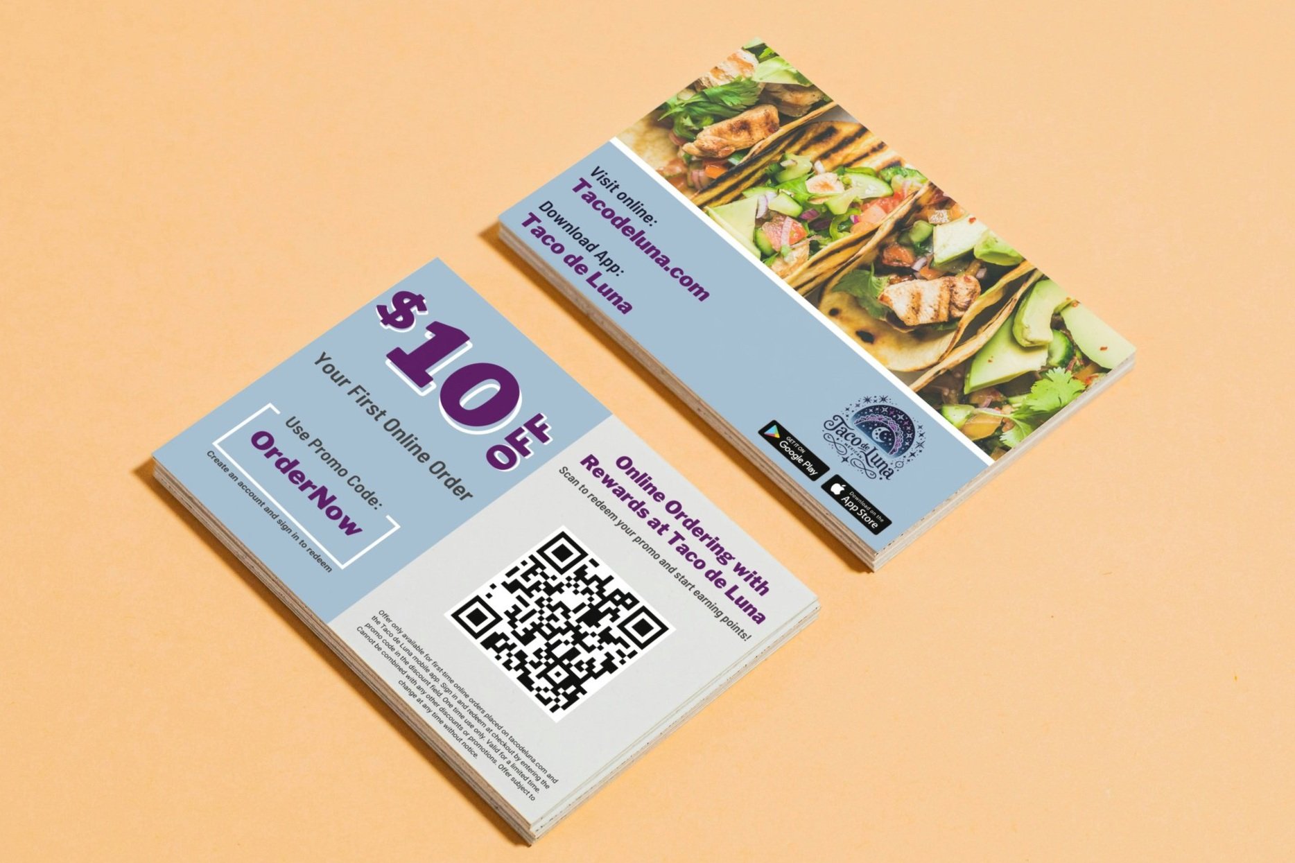 How to Use: Place at your counter, insert into takeout and delivery bags, or hand them out to customers. You can also distribute them through local businesses or community hubs to reach new potential diners.