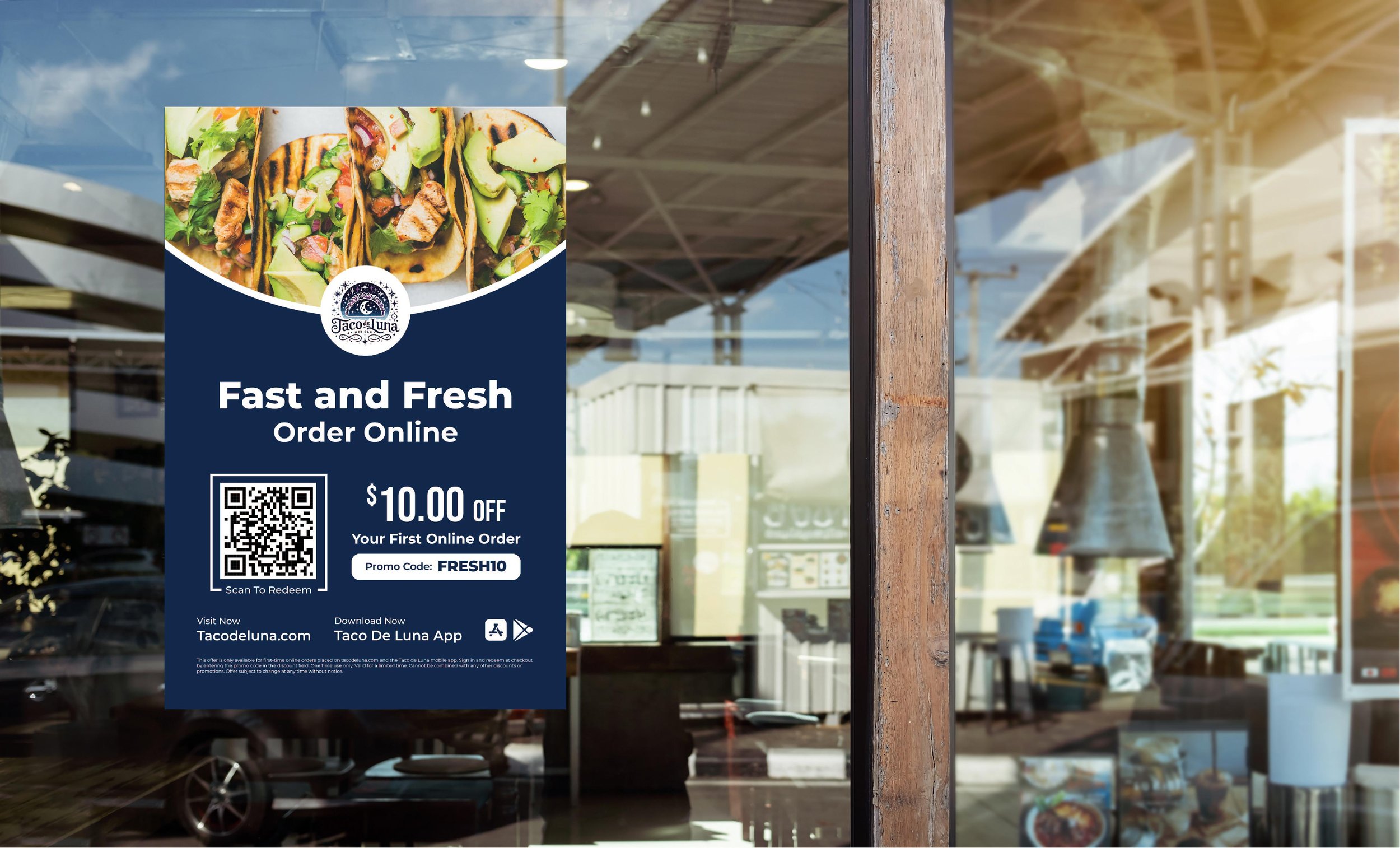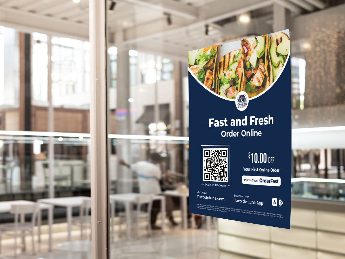Capture the attention of dine-in guests with in-store signage that promotes your online ordering platform. We include (and recommend) the option of adding a first-time user discount to encourage customers to place their next order online.