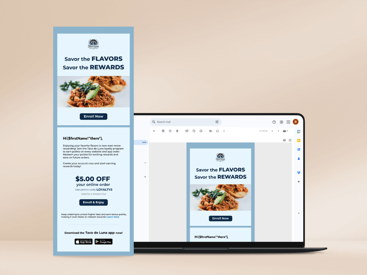 Connect with your customers directly in their inbox with high-converting email designs. These emailers spotlight your online ordering, app, loyalty program, or gift cards—complete with exclusive promotions to drive immediate action.
