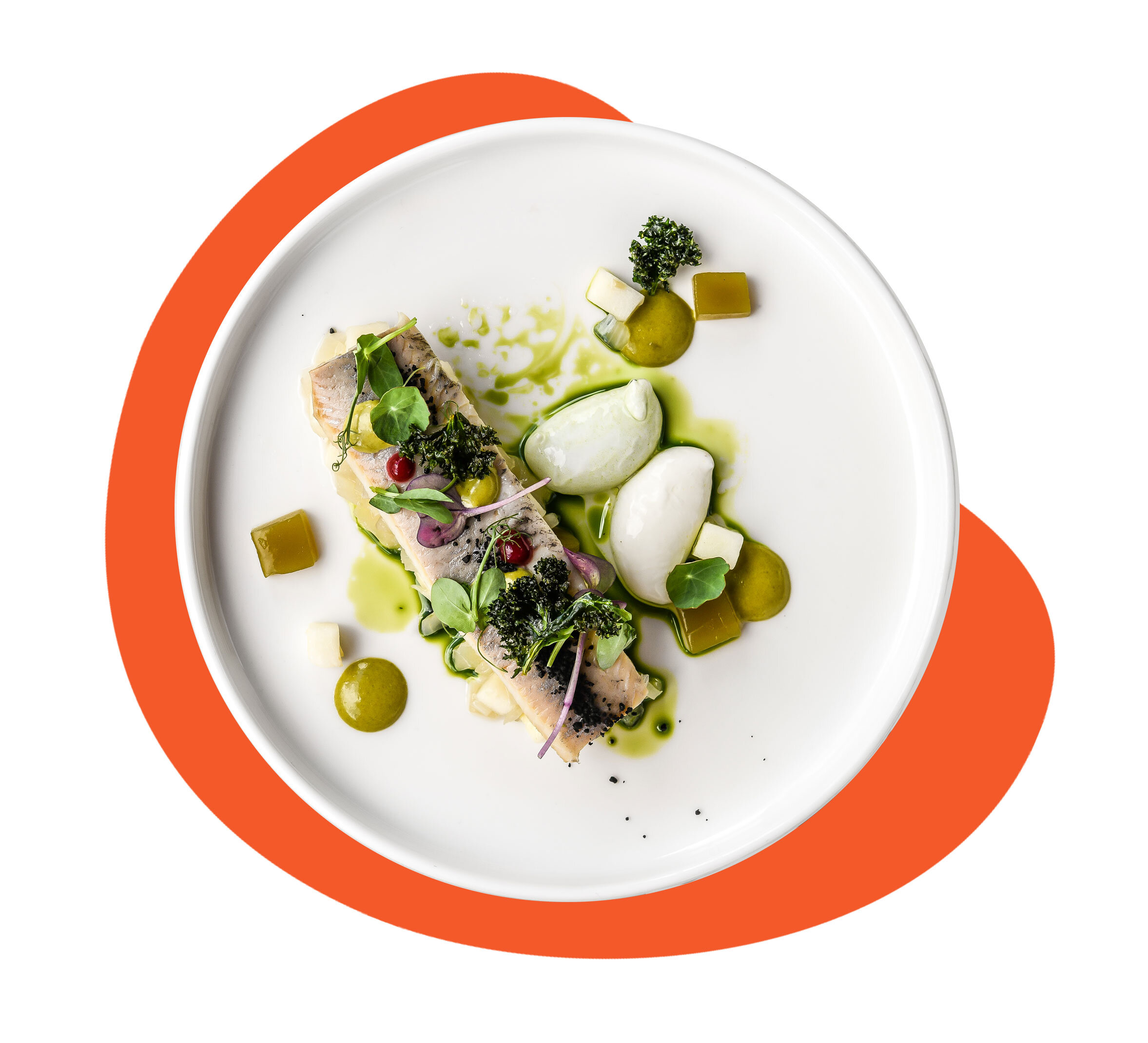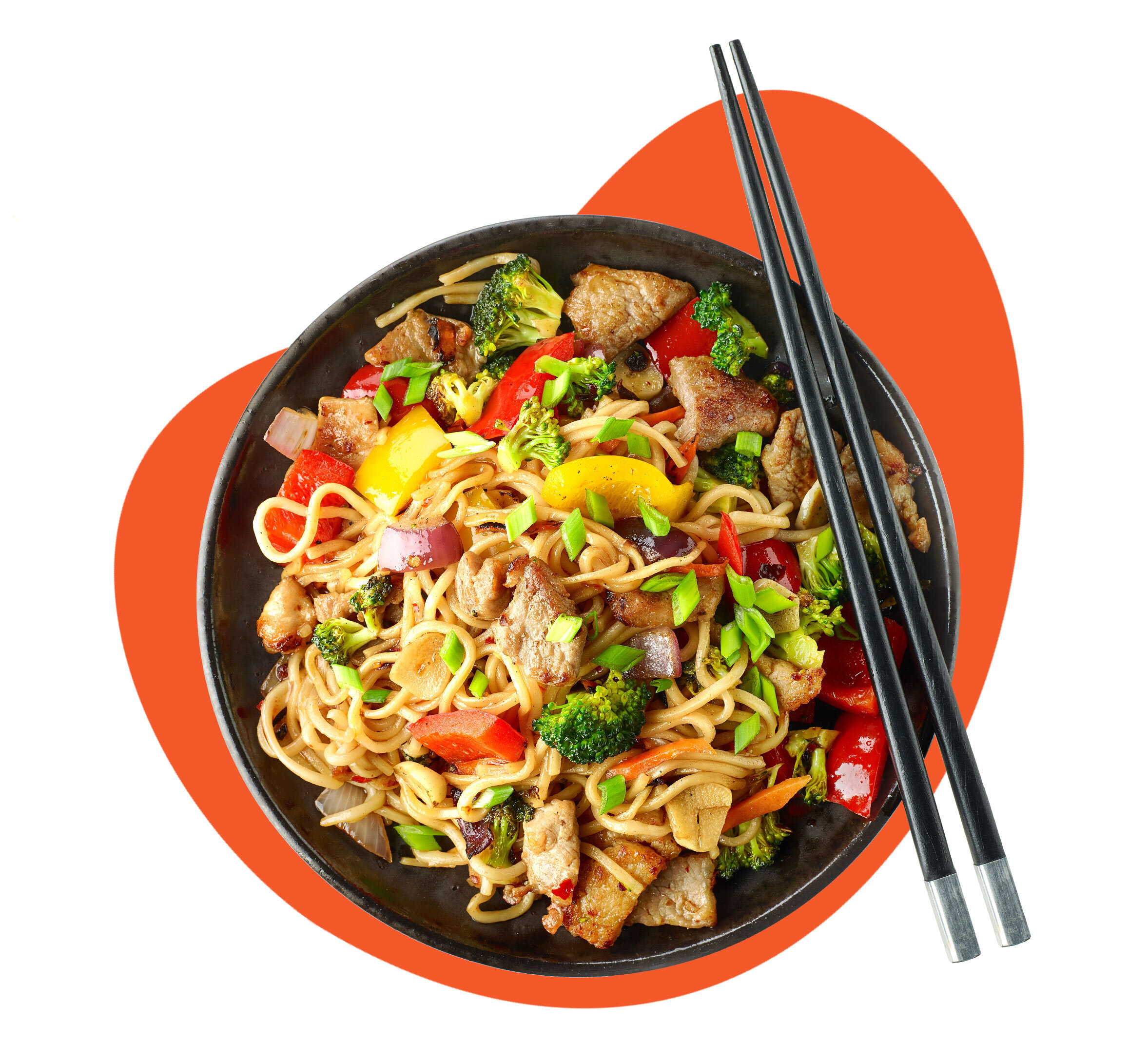 Asian and asian-influenced menu examples highlighting colorful sushi, exotic bowls, and beautiful dumplings.