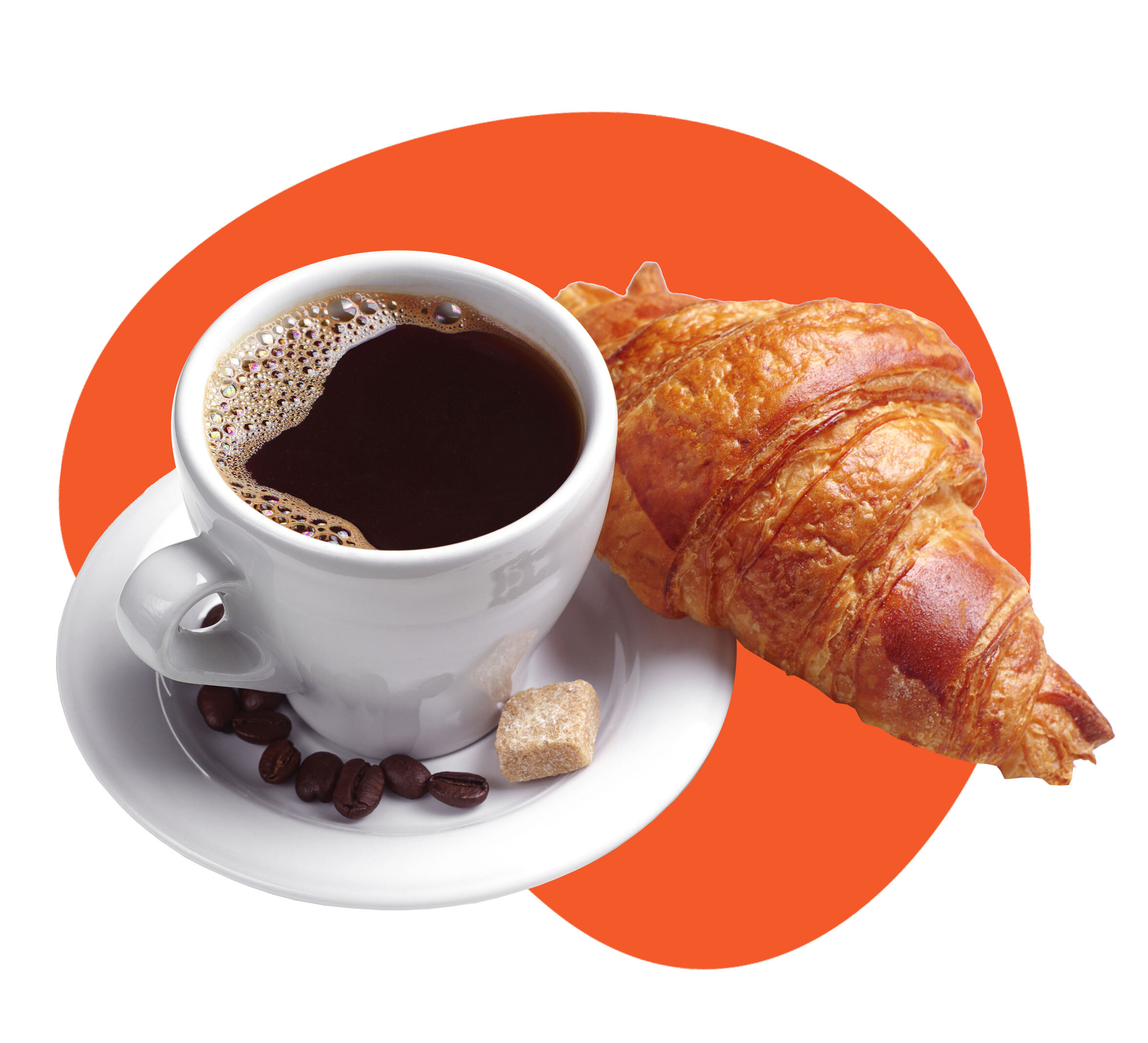 Online ordering menu examples that spotlight fresh brewed coffee, buttery croissants, bakery style sandwiches, and homemade cakes.