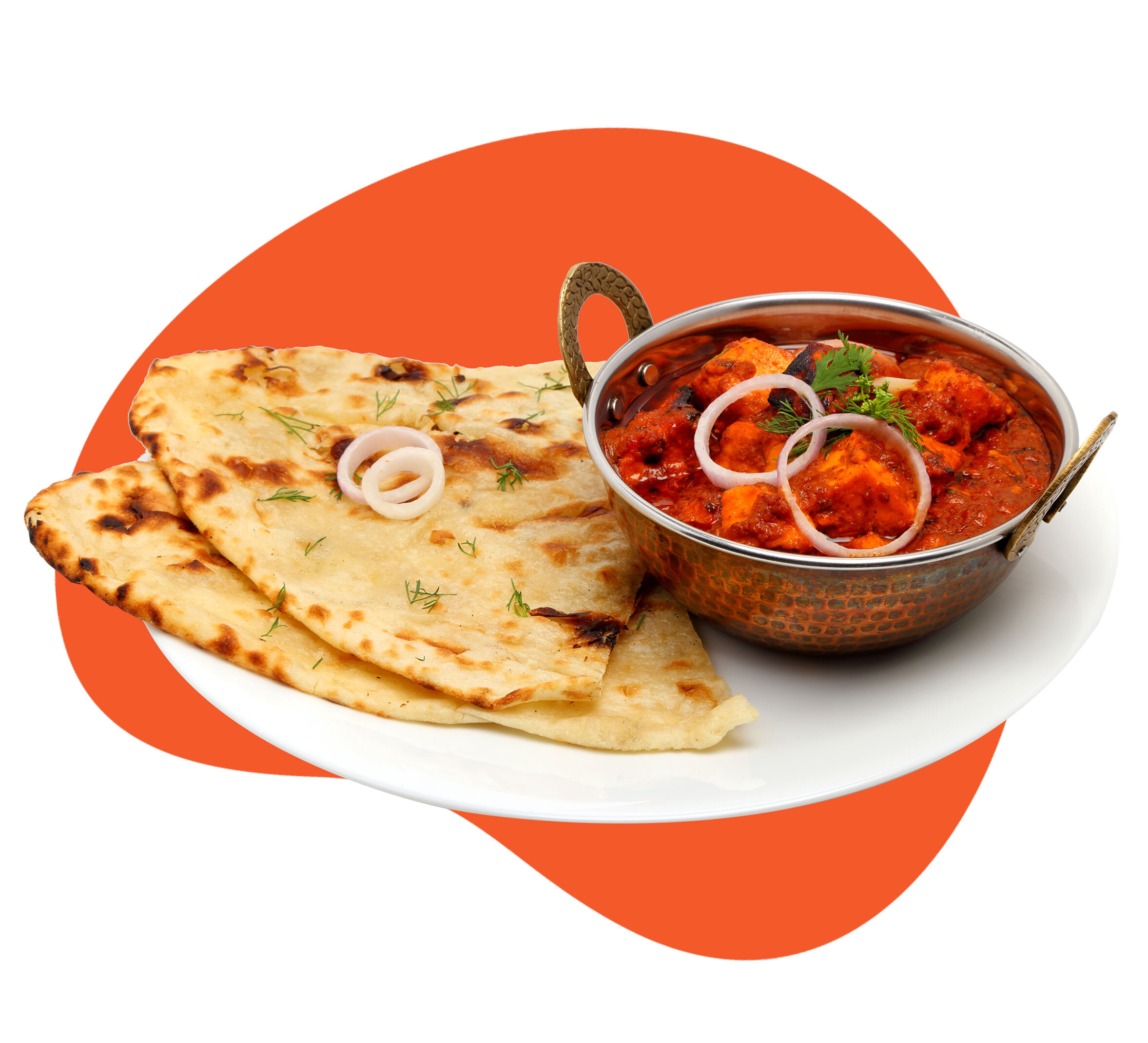 Indian cuisine menus examples highlighting rich butter chicken with roti, spicy curries and tandoori chicken to make your mouth water.