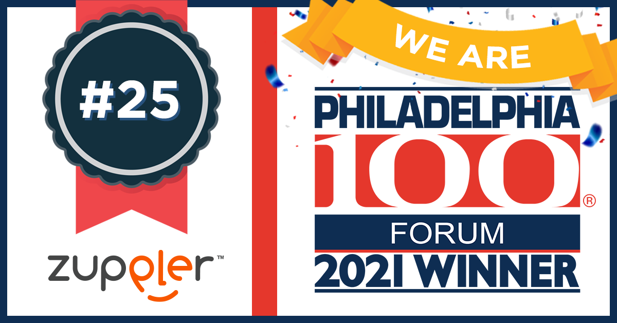 Zuppler has been named the 25th fastest growing company in the Greater Philadelphia Region, according to The Philadelphia100 award.